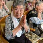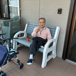 外では心地よい風を浴びながら、ベンチでひと休み。ピースサインを見せてくださる姿に、スタッフも思わず笑顔になりました。